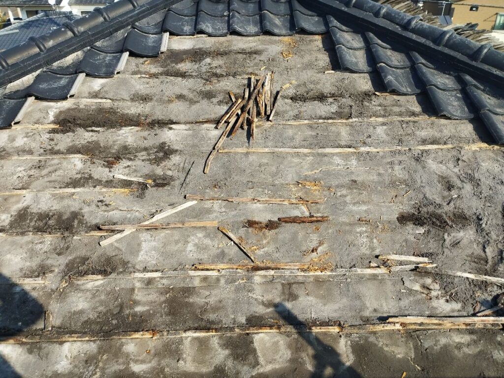 新しく防水シート(ルーフィング)を張りなおして瓦桟を取付けました。これで雨漏れの心配はなくなりました。