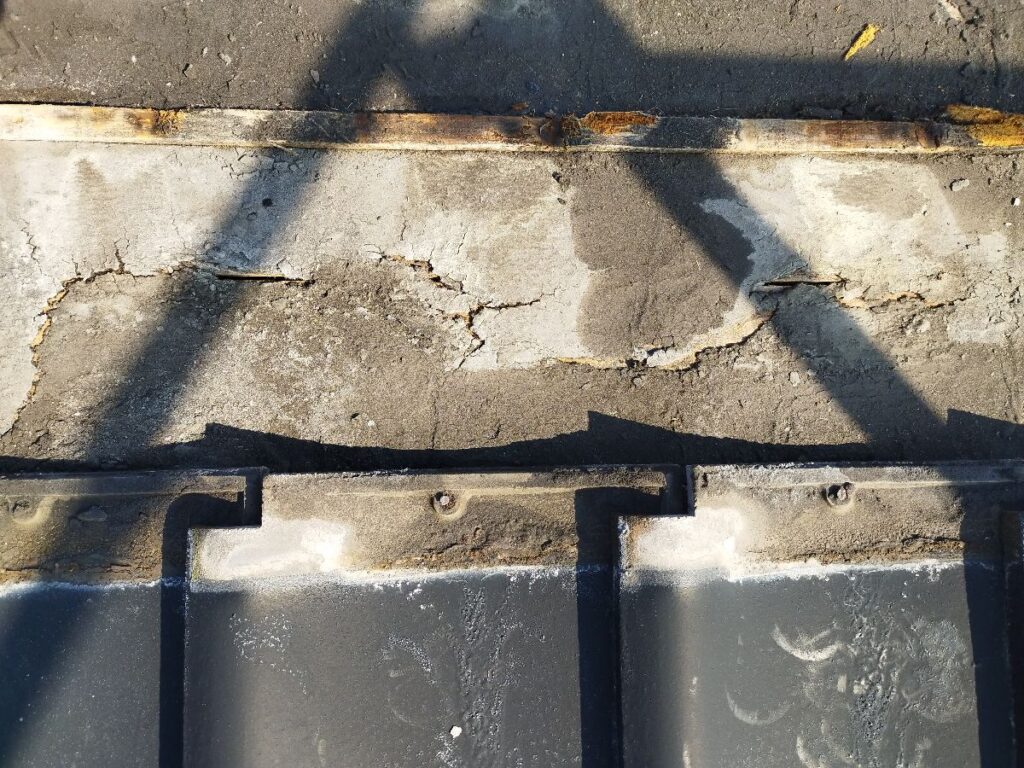 防水シート(ルーフィング)が劣化により破れていました。今回の雨漏れの原因です。